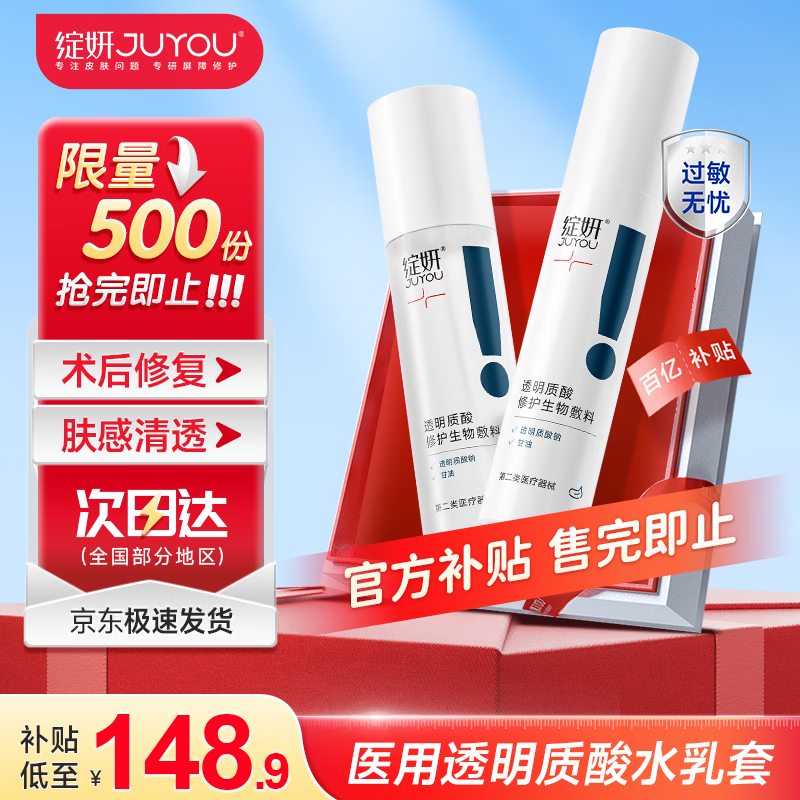 绽妍透明质酸修护生物医用敷料修复水乳保湿补水医美术后敏感肌皮炎械字号面部护肤水乳玻尿酸钠120ml+50g价格:588.00元!