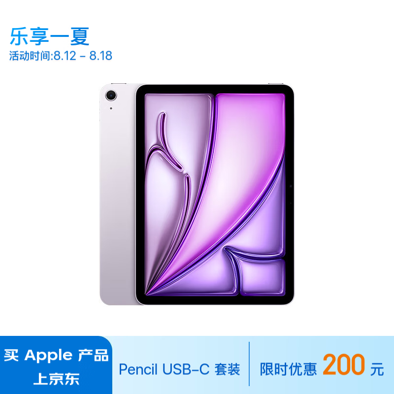 Apple/苹果【Pencil USB-C套装】 iPad Air 11英寸 M2芯片 2024年新款平板电脑(Air6/128G WLAN版)紫色价格:5398.00元!