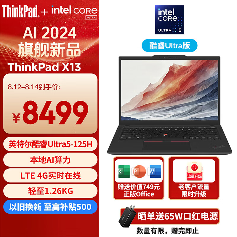 ThinkPad X13 2024 13.3英寸全互联商务办公联想笔记本电脑 酷睿Ultra5 125H 32G 512G AI PC轻薄本(3HCD)价格:8499.00元!