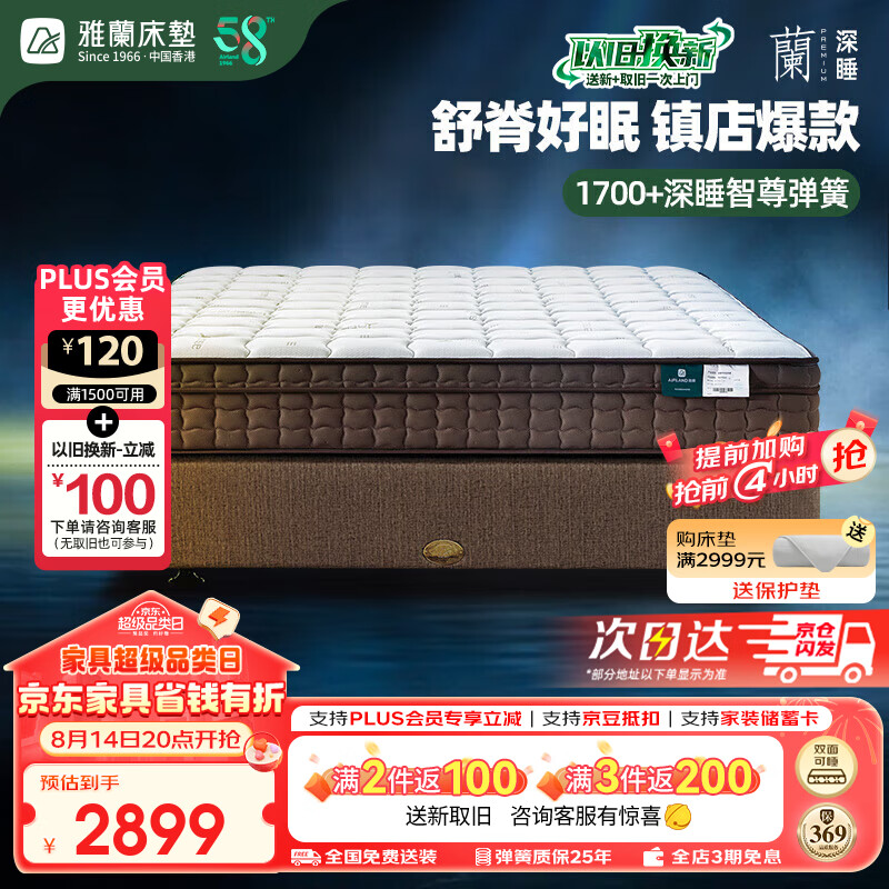 雅兰(AIRLAND)深睡系列乳胶床垫透气软硬适中独袋弹簧床垫深睡智尊版1.8*2米价格:4999.00元!