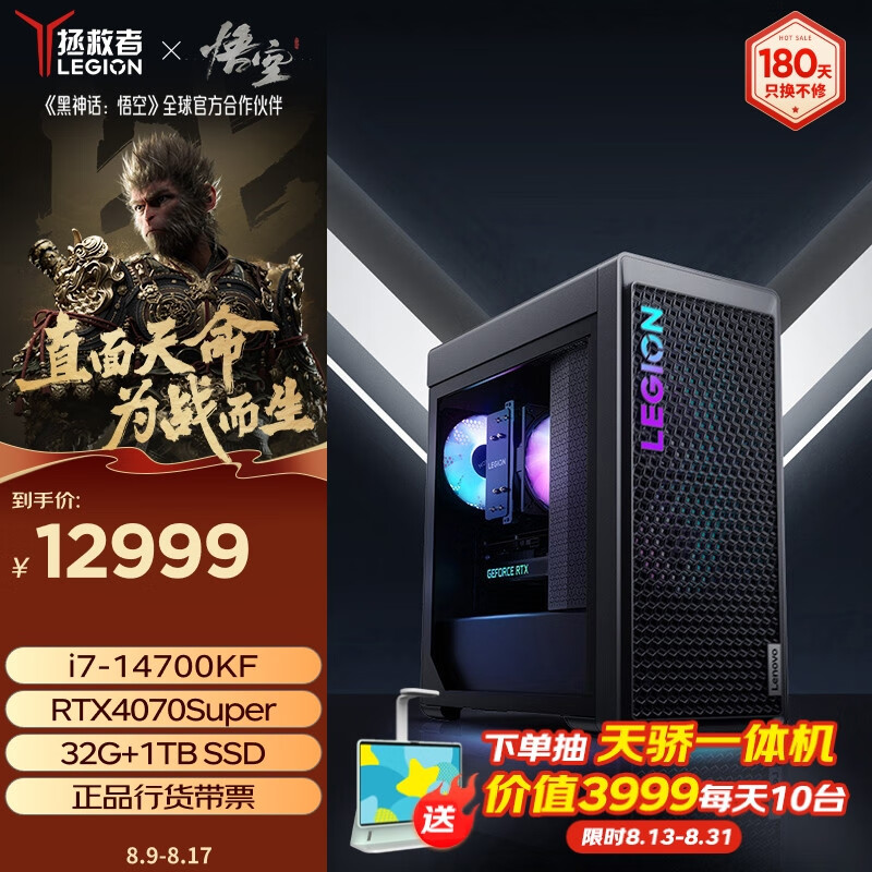 联想拯救者刃7000K游戏主机官方合作台式电脑14代i7-14700KF RTX4070S 12GB显卡32G价格:12999.00元!