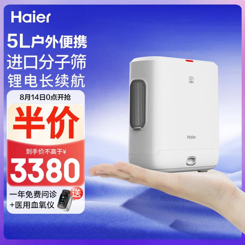 海尔(Haier)5L升便携式制氧机家用小型随身老人孕妇吸氧氧疗户外高原旅游车载高铁氧气机可充电Freest-5K价格:6999.00元!