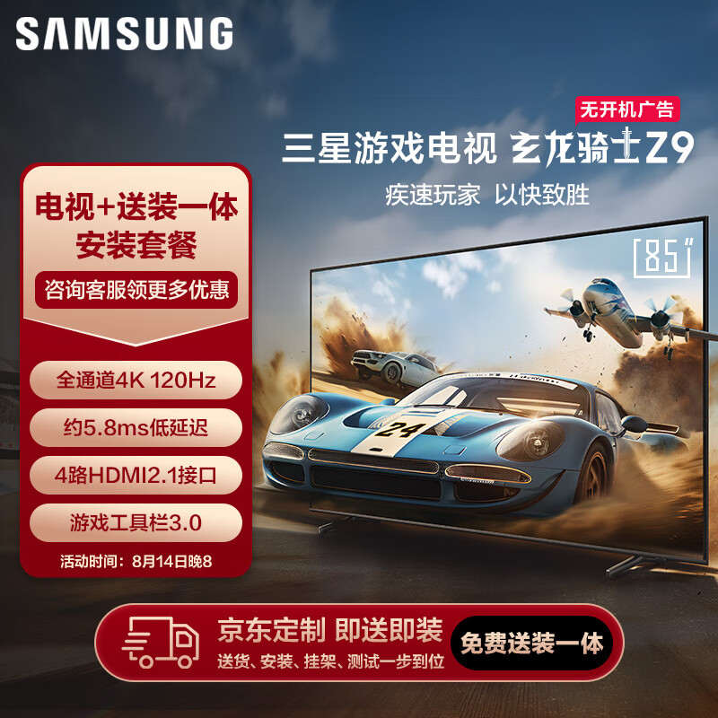 三星(SAMSUNG)玄龙骑士Z9【送装一体版】85英寸 3+64G 专业游戏电视 5.8ms 低延迟 无开机广告 超薄4K 120Hz价格:8798.00元!