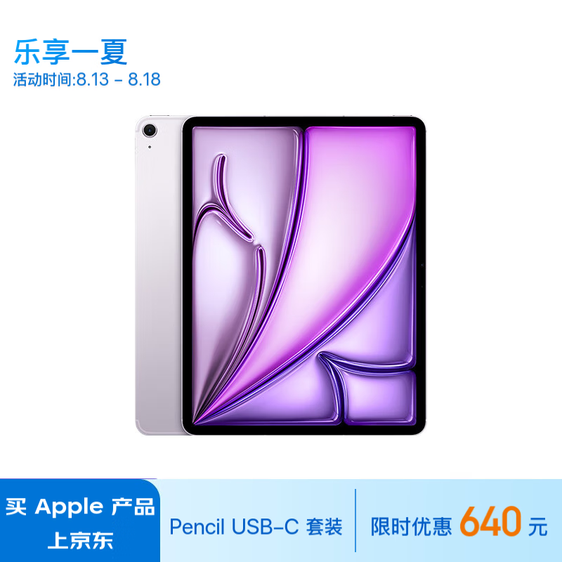 Apple/苹果【Pencil USB-C套装】 iPad Air 13英寸 M2芯片 2024年新款平板电脑(Air6/256G WLAN版)紫色价格:7898.00元!