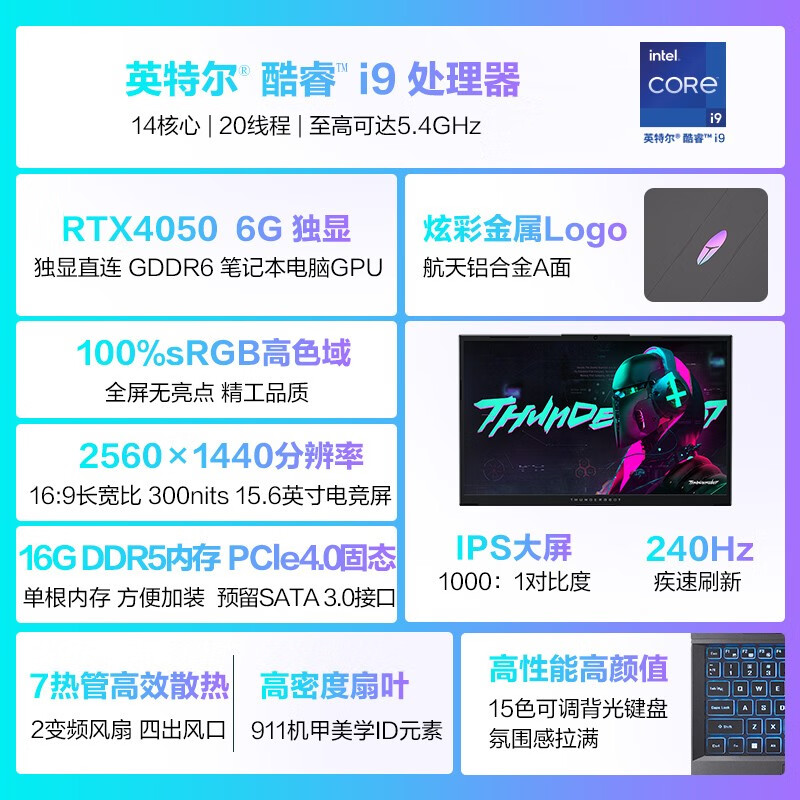 雷神(ThundeRobot)911MT黑武士15.6英寸独显轻薄游戏本骨灰玩家级剪辑AI设计师编程移动工作站笔记本电脑变形金刚IP i9-13900H|RTX4050|16G|512价格:9999.00元!