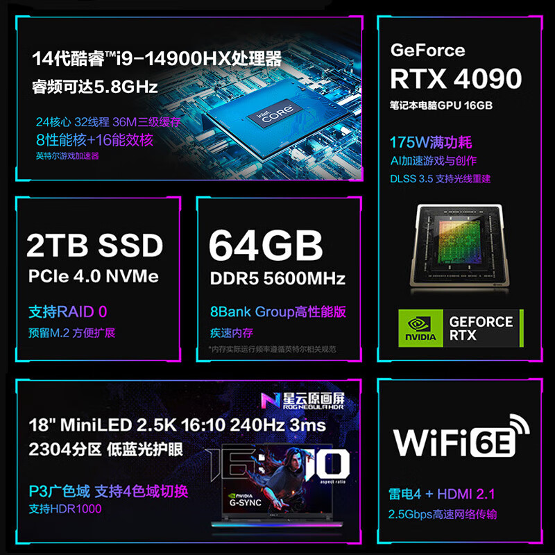 ROG枪神8 Plus 超竞版 18英寸14代酷睿i9游戏本笔记本电脑(i9-14900HX 64G 2T RTX4090 2.5K MiniLED)价格:28969.00元!