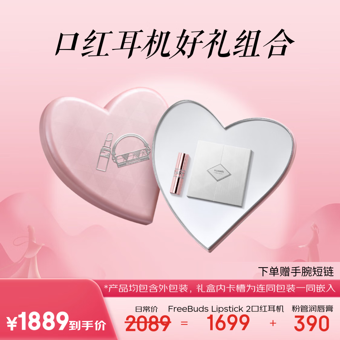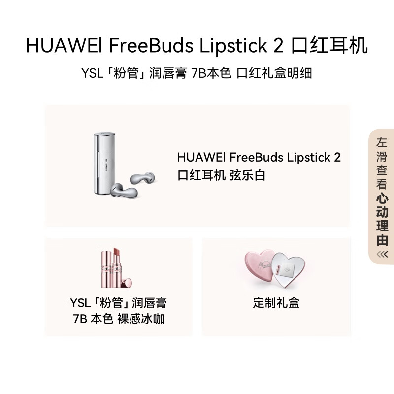 华为【七夕礼物】FreeBuds Lipstick 2 口红耳机弦乐白+YSL「粉管」润唇膏7B本色价格:1889.00元!