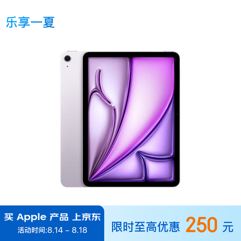 Apple/苹果 iPad Air 11英寸 M2芯片 2024年新款平板电脑(Air6/256G WLAN版/MUWK3CH/A)紫色价格:5599.00元!