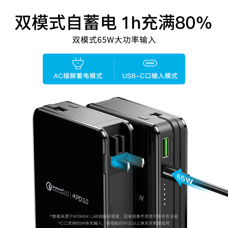 摩米士MOMAX氮化镓65W充电器充电宝二合一自带线快充移动电源带插头15000mAh适用苹果华为手机平板笔记本等价格:358.00元!