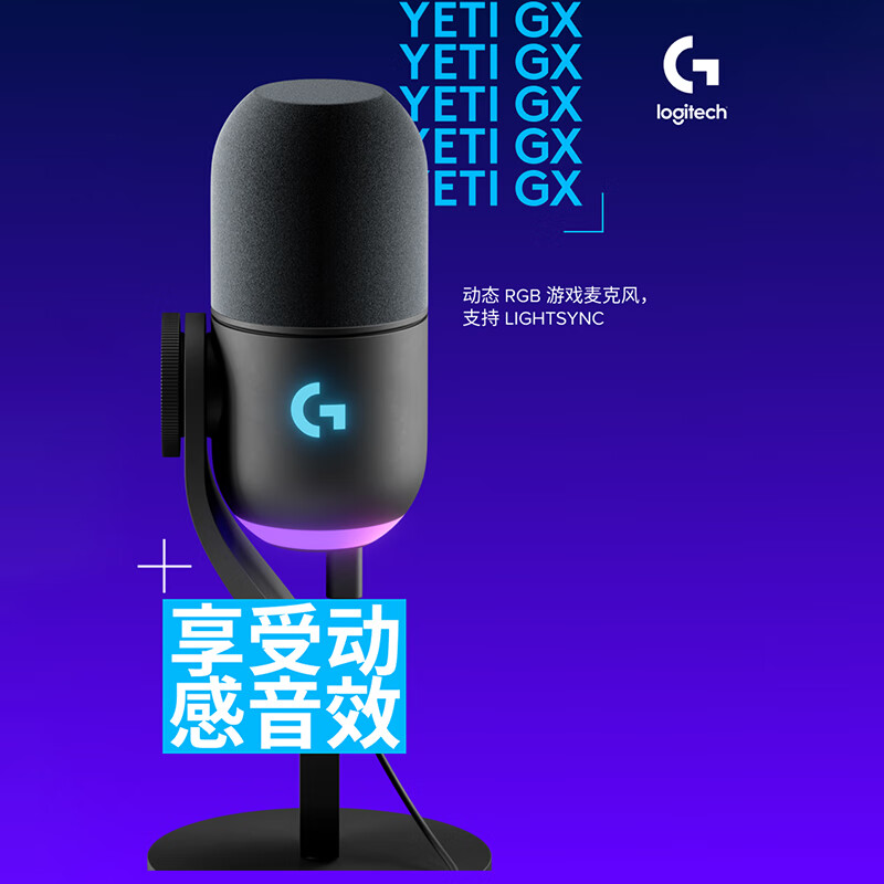 罗技(Logitech)Yeti GX游戏麦克风USB动圈RGB麦克风专业K歌录音话筒笔记本电脑手机游戏网红主播直播价格:1299.00元!