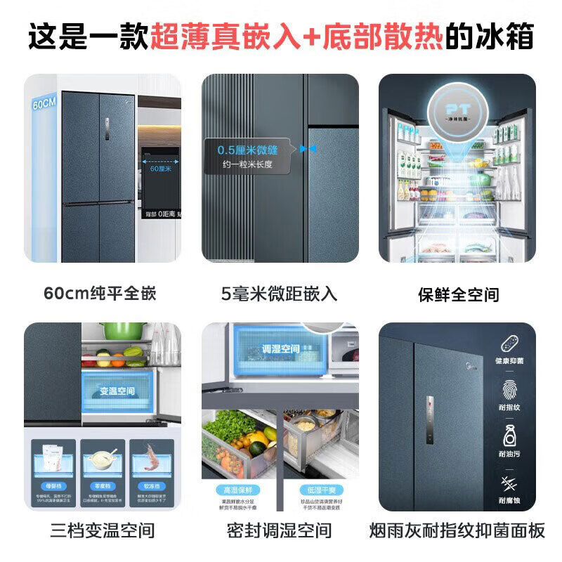 美的M60系列569十字双开四门一级能效双变频60cm纯平全嵌风冷无霜双净味底部散热家用智能大容量电 MR-569WUSPZE价格:5699.00元!