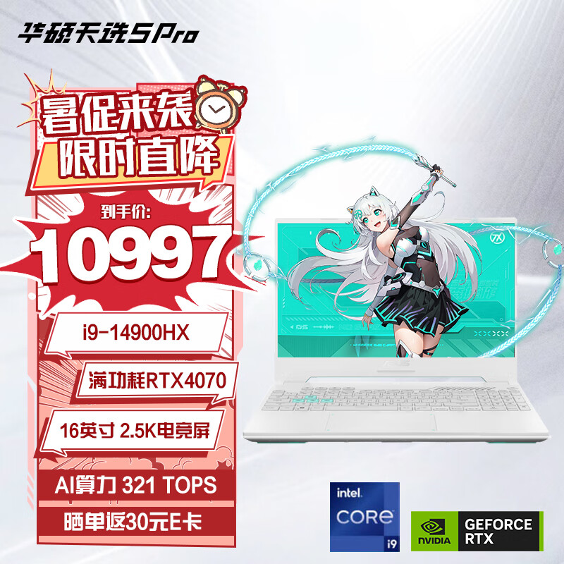 华硕天选5 Pro 14代酷睿i9 16英寸电竞游戏本 笔记本电脑(i9-14900HX 16G 1T RTX4070 2.5K高亮高刷)青价格:10999.00元!