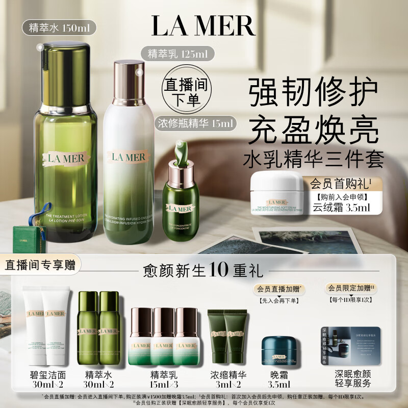 海蓝之谜修护经典3件套装(精粹水150ml+精粹乳125ml+浓缩精华15ml)价格参考: