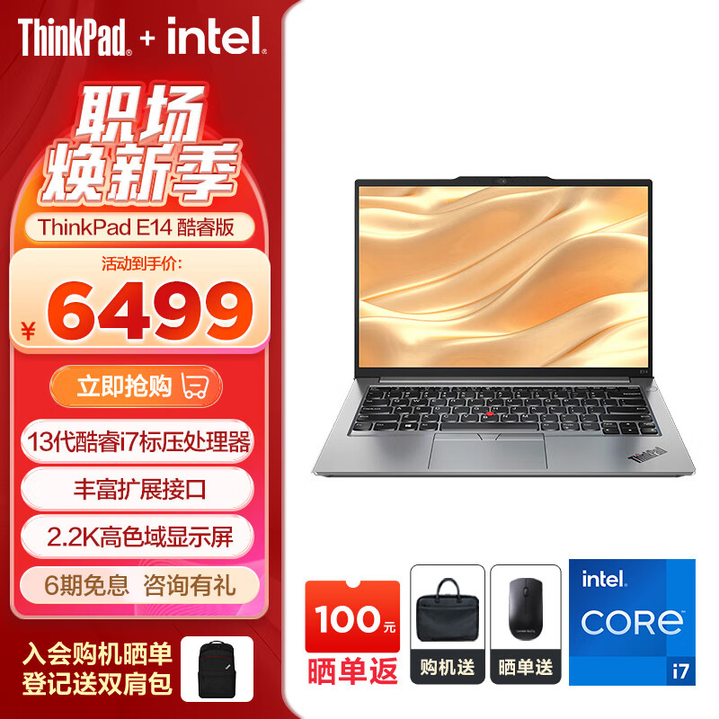 ThinkPad 联想 E14 AI 2024全新英特尔酷睿Ultra处理器可选 商务办公便携笔记本电脑 14英寸轻薄本 i7-13700H 16G 1T 0HCD银色价格:6999.00元!