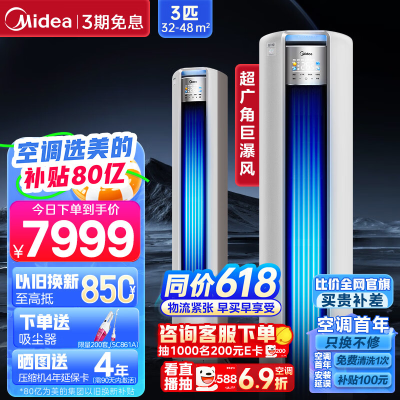 美的(Midea)空调柜机 3匹 机煌 新一级能效 变频冷暖 除湿 巨瀑风 客厅立式空调 KFR-72LW/JH1-1价格:7999.00元!
