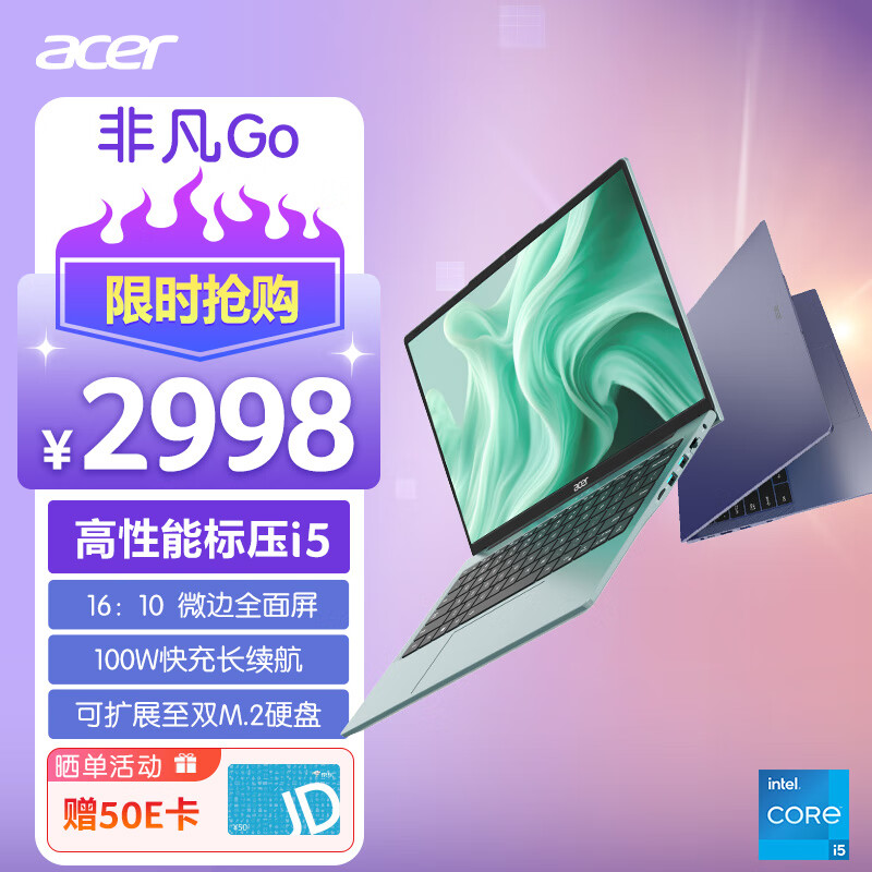 宏碁(acer)非凡Go 14英寸酷睿高性能轻薄本 办公笔记本电脑大学生 (i5-12450H 16G 512G )灰价格:2999.00元!
