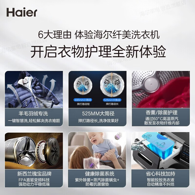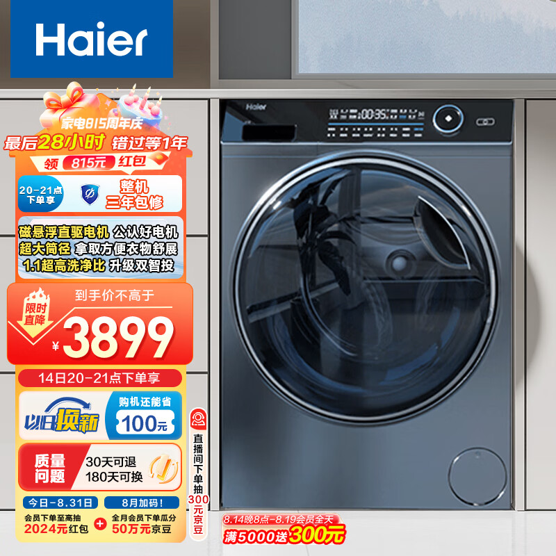 海尔(Haier)海尔(Haier)滚筒洗衣机全自动 10公斤大容量 超薄【直驱XQG100-BD14176LU1】双智投 以旧换新价格:3399.00元!