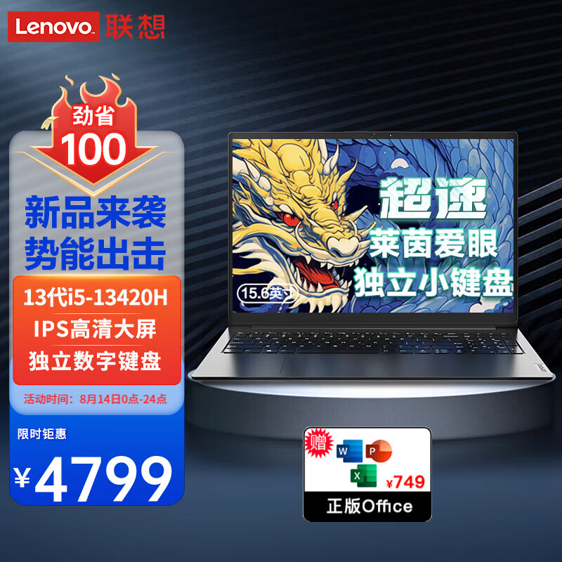 联想(Lenovo)笔记本电脑昭阳超速 2024新品13代标压轻薄本AIR 15.6英寸屏商务办公学生设计游戏手提电脑 定制丨i5-13420H 40G 1T固态 IPS莱茵爱眼高清屏 26项航空价格:4899.00元!