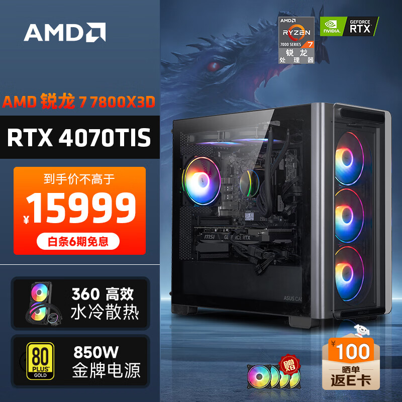 AMD龙神 锐龙R7 7800x3D/RTX4070TISuper 16G/32G/2T固态水冷电竞游戏设计台式电脑主机diy组装整机价格:17099.00元!