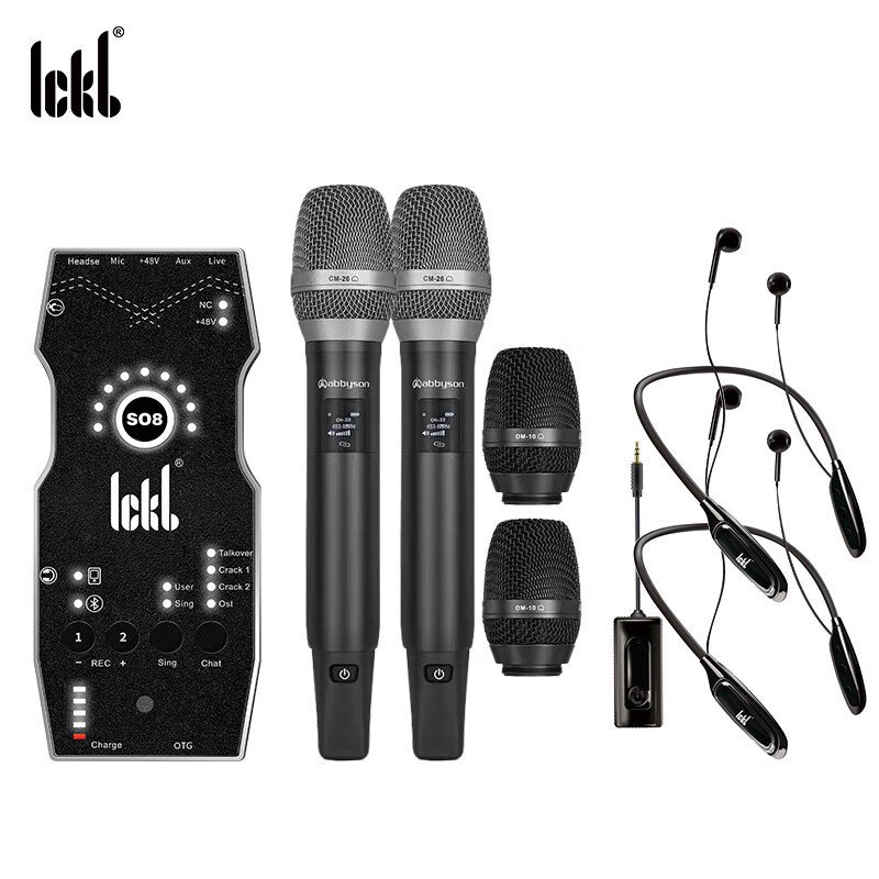 Ickb so8六代声卡艾博逊AU20无线麦克风耳机套装手机直播电脑抖音通用主播唱歌录音设备一拖二话筒价格:3278.00元!