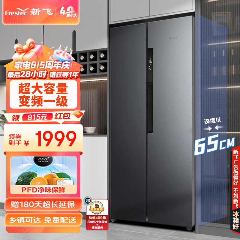 新飞610升对开门大容量冰箱净味保鲜风冷无霜除菌变频一级节能BCD-610WK9CT价格:2099.00元!