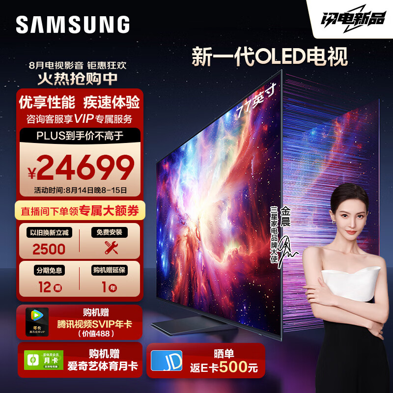 三星(SAMSUNG)77S90D 77英寸 OLED游戏电视 AI电视 144Hz 无开机广告 77S90Z升级款QA77S90DAEXXZ价格:25699.00元!