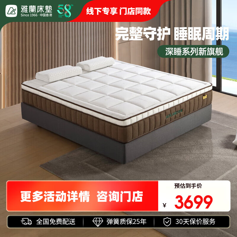 雅兰(AIRLAND)2CM乳胶床垫软硬适中3区独袋弹簧床垫 深睡Pro+ 1.8*2米 超体价格:5699.00元!