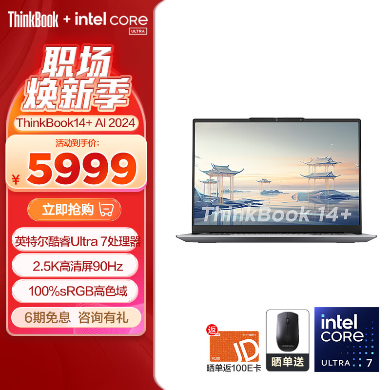 ThinkPad联想ThinkBook 14+ 2024 AI全能本 英特尔酷睿Ultra标压处理器14.5英寸笔记本电脑学生办公轻薄本 Ultra7 16G 512G 2.5K90Hz价格:6299.00元!