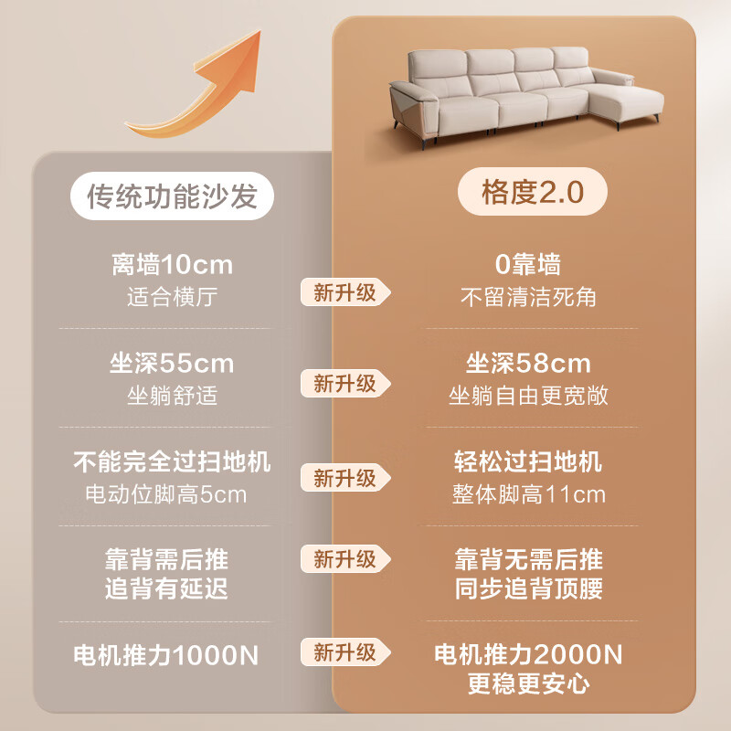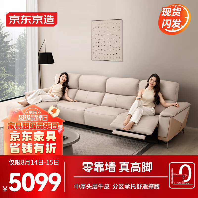 京东京造零靠墙格度真皮电动沙发 头层牛皮左贵妃位客厅大户型米白色3.05m价格:5599.00元!