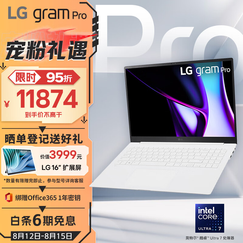 LGgram Pro 2024 evo Ultra7 16英寸AI轻薄本2.8K OLED屏长续航笔记本电脑(32G 1TB 白)游戏AI PC价格:13299.00元!