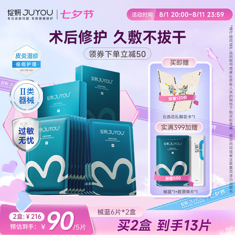 绽妍皮肤修护医用敷料贴2盒12片透明质酸钠械字号医美术后敏感肌面部膜晒后皮炎补水修复冷敷贴七夕送礼价格:302.00元!