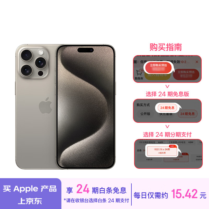 Apple/苹果【24期免息】 iPhone 15 Pro Max (A3108) 512GB 原色钛金属支持移动联通电信5G双卡双待手机价格:11299.00元!