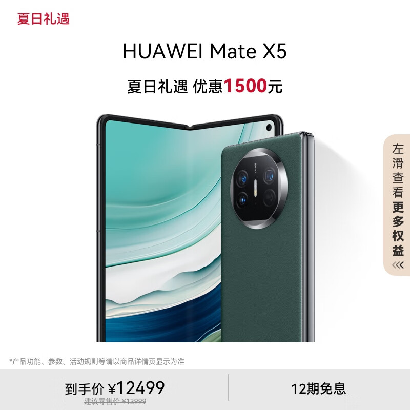 华为(HUAWEI) Mate X5 折叠屏手机 12GB+512GB 青山黛价格:12499.00元!