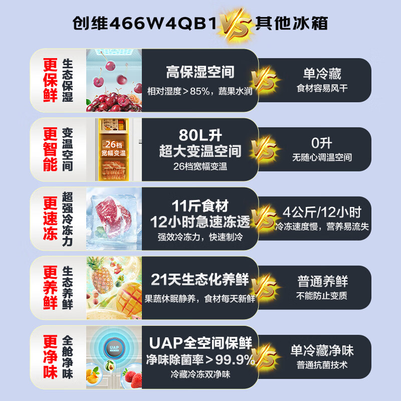 入手对比创维BCD-466W4QB1真实感受评测?真实情况如何?