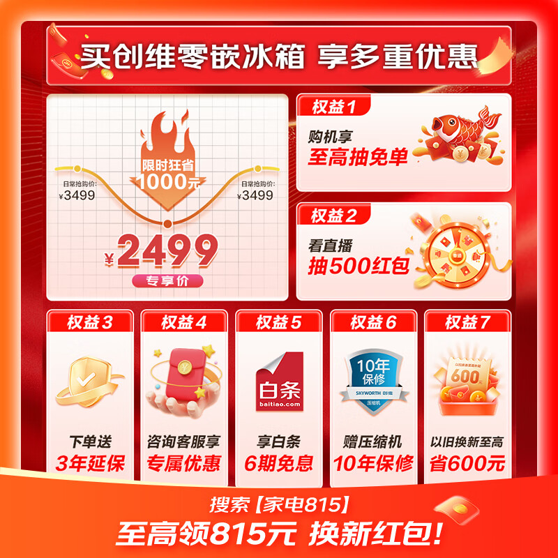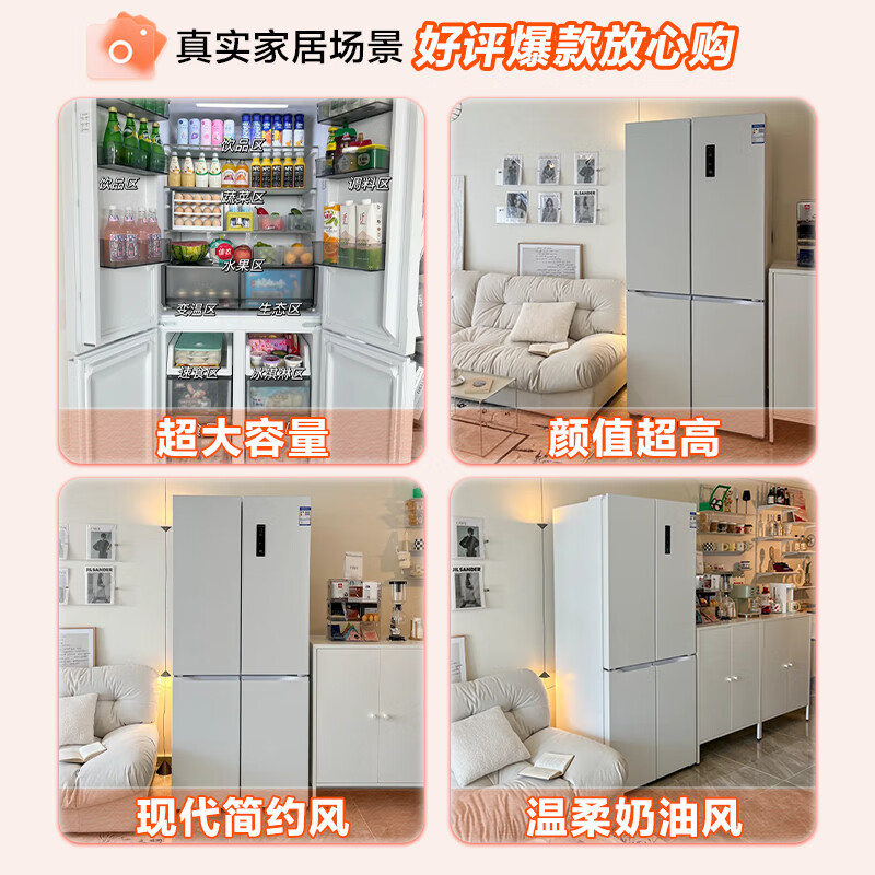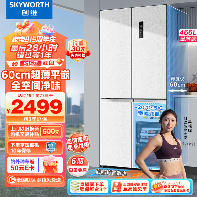 创维冰魔方 466升十字对开四开门60cm超薄平嵌入式家用冰箱白色大容量底部散热BCD-466W4QB1价格:2699.00元!