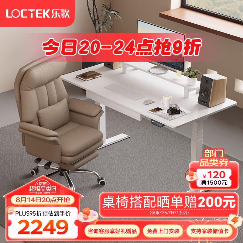 乐歌电动升降桌电脑桌站立办公学习桌写字书桌 E5-N/1.4m雅白色套装价格:2631.00元!