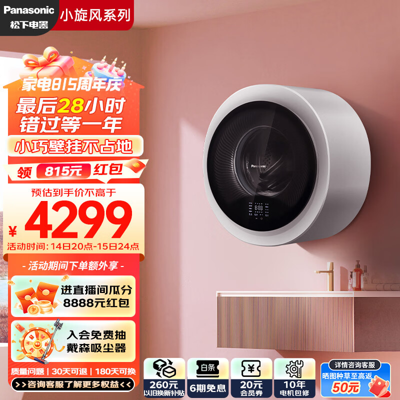松下(Panasonic)滚筒洗衣机全自动【小旋风D】 洗烘一体 壁挂内衣内裤迷你小型儿童婴儿 母婴洗 XQG30-AD500W价格:4299.00元!