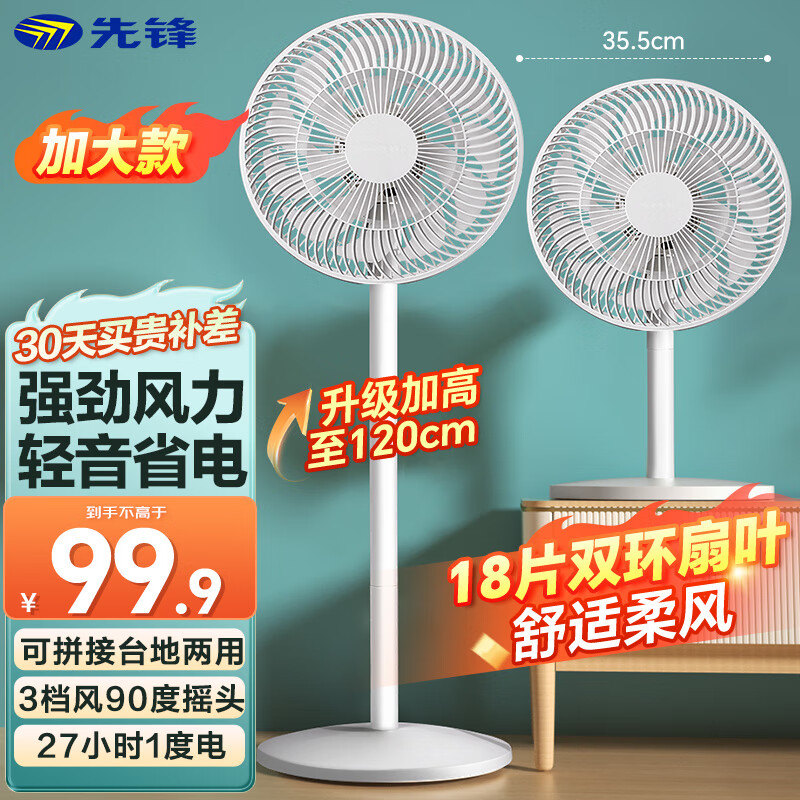 先锋(SingFun)家用电风扇落地扇风扇节能宿舍1米2加高台地扇空气循环扇静音大风量风扇DLD-D17pro价格:149.00元!