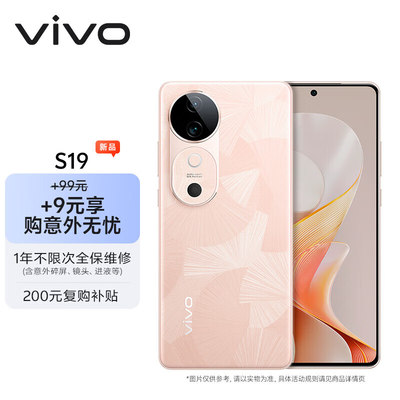 vivo S19 12GB+256GB 桃花扇【意外无忧套装】6000mAh超薄长续航 影棚级柔光环 第三代骁龙7 拍照 手机价格:2708.00元!