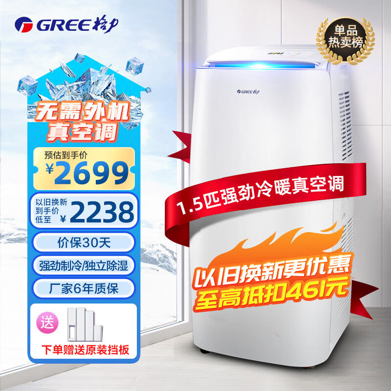 格力(GREE)移动空调冷暖一体机1.5匹家用客厅出租屋厨房除湿强劲制热小型无外机免安装立式空调KYR-35/NANA1A价格:2699.00元!
