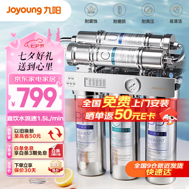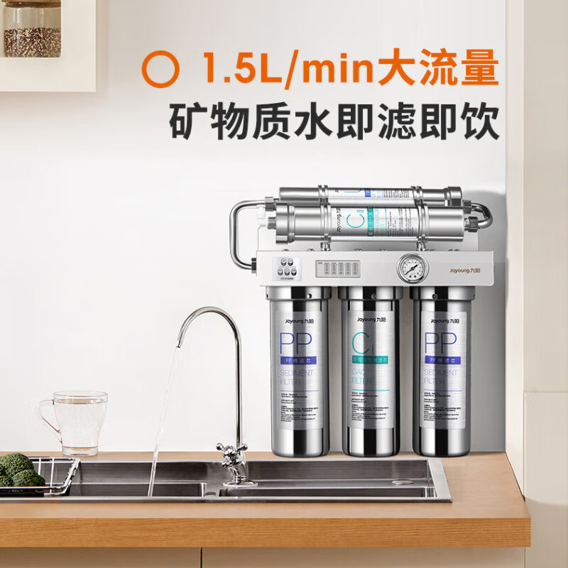 九阳(Joyoung)【不锈钢旗舰款】厨房超滤净水器 家用矿物质直饮不锈钢厨下净水机前置过滤器RC550价格:999.00元!