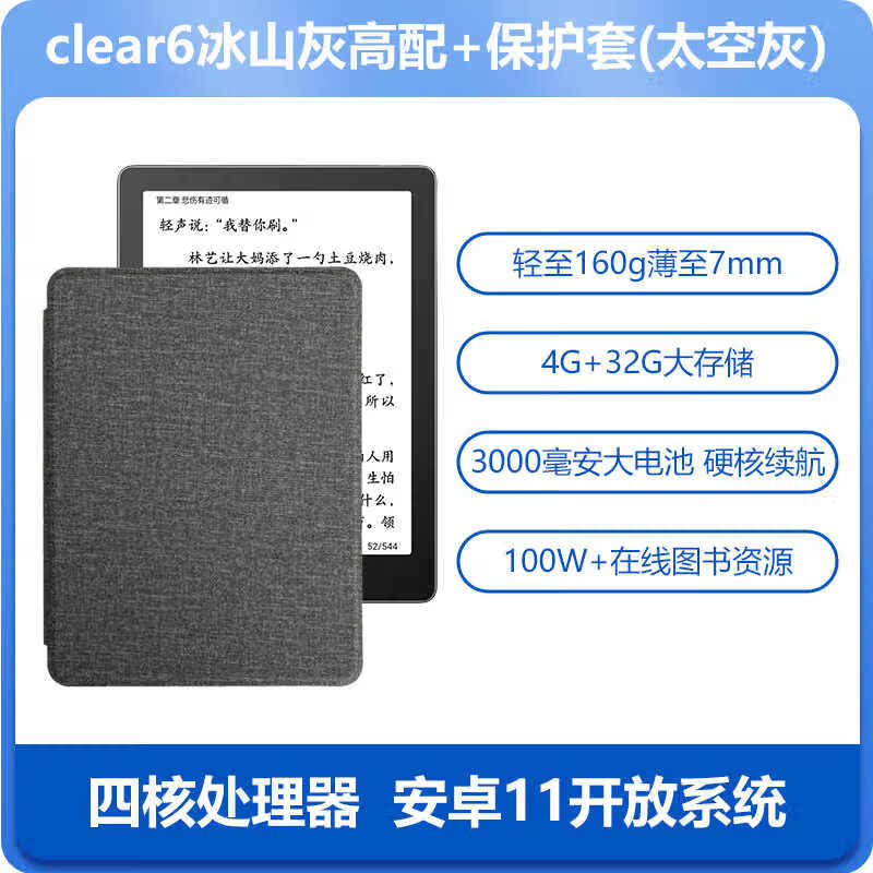 汉王(Hanvon)6英寸电子书阅读器 墨水屏电纸书 智能阅读本电子纸 冰山灰4+32G款+太空灰保护套.套装价格:868.00元!
