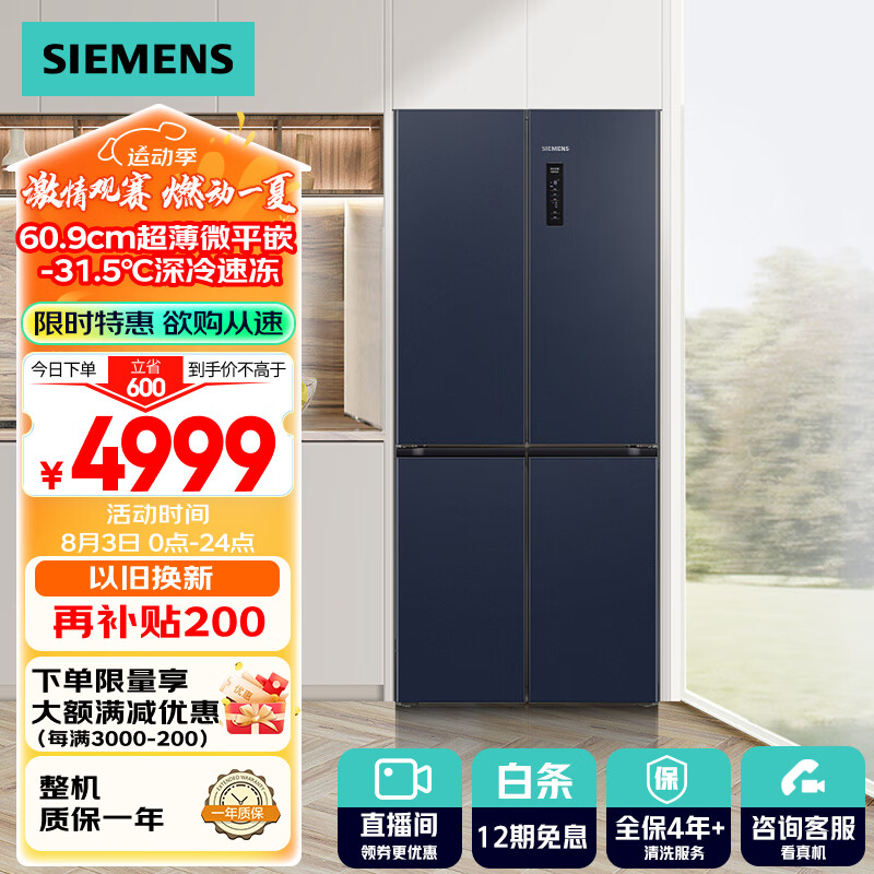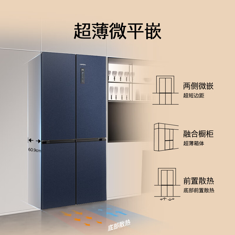 西门子(SIEMENS)十字星系列497升超薄微平嵌冰箱四开门十字四门嵌入式近60cm变温一级能效蓝以旧换新KC505680EC价格:5199.00元!