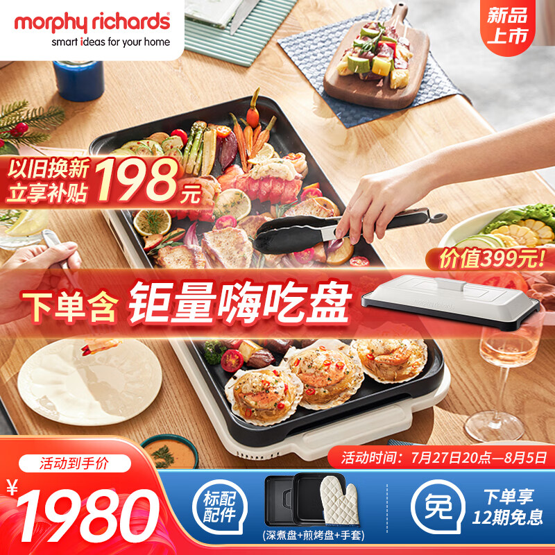摩飞电器(Morphyrichards)折叠多功能锅 家用聚会嗨吃电火锅多用途料理锅【MR9188白+MR1206嗨吃烤盘】价格:1989.00元!
