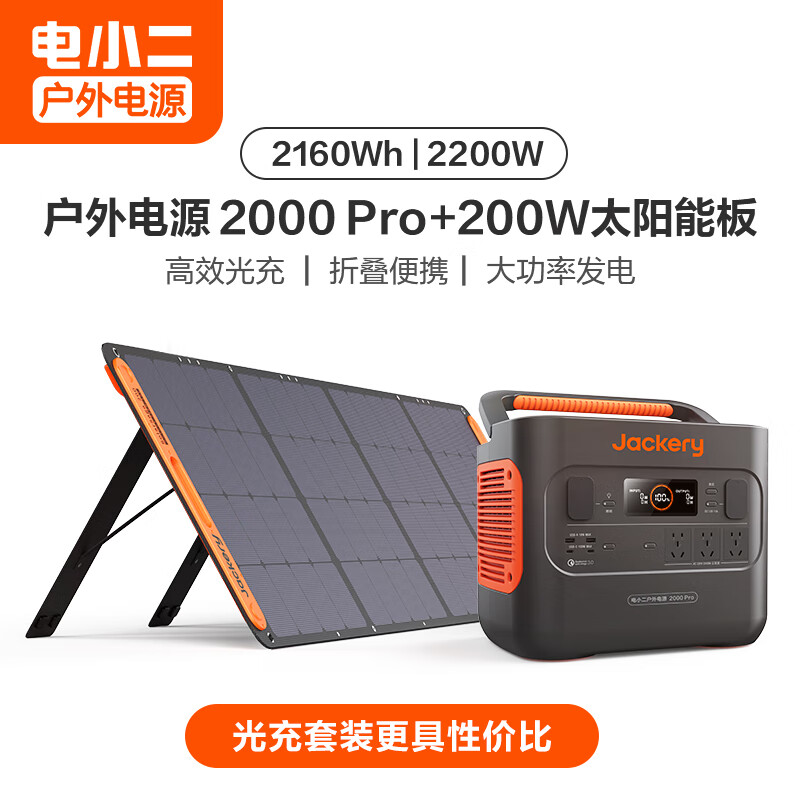 电小二户外电源2000Pro+200W太阳能板价格参考: