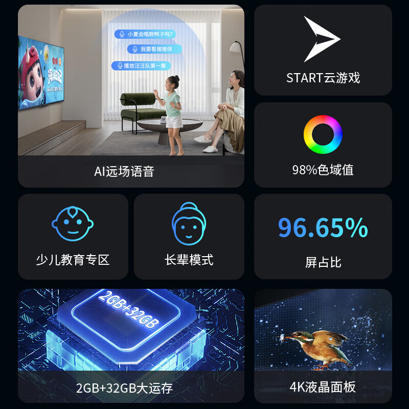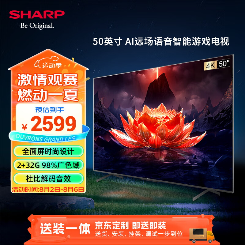 SHARP夏普电视50英寸【送装一体版】 2+32G 98%广色域 HDR10+HLG 杜比解码 4K 超薄液晶电视C50A7EA价格:2599.00元!