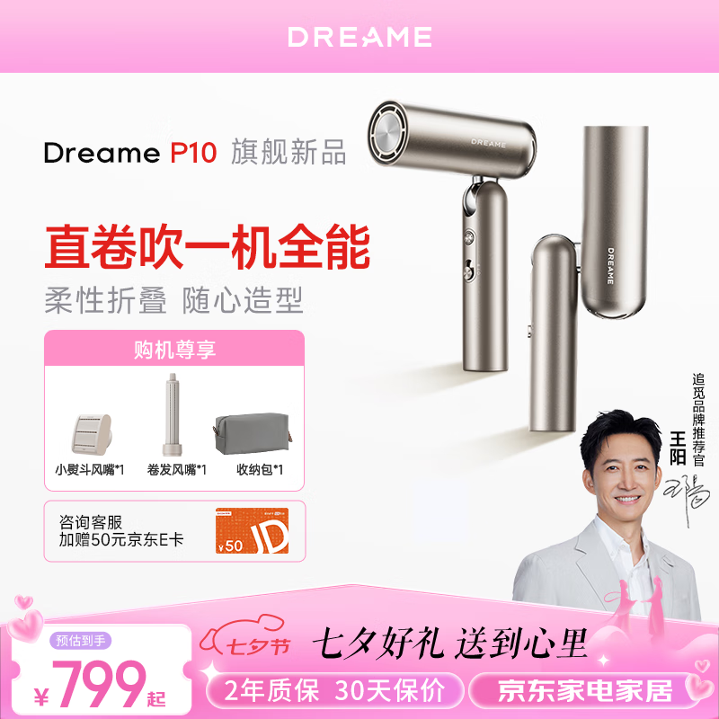 追觅Pocket便携折叠迷你高速口袋造型师吹风机负离子护发快速干发低噪电吹风情人节送礼礼物 钛金色价格:999.00元!