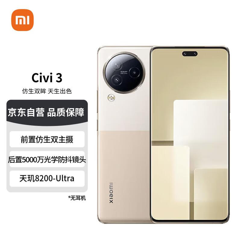 小米 Civi 3 前置仿生双主摄 天玑8200-Ultra 12+256G 奇遇金 红米小米手机 5G手机 su7价格:1999.00元!