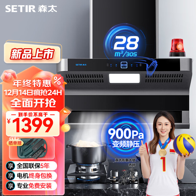 森太(SETIR)顶侧双吸油烟机 小户型智能变频大吸力家用自动清洗抽油烟机CXW-250-B812BQL价格:1599.00元!