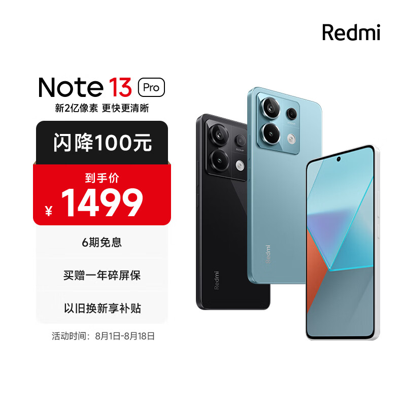 小米Redmi Note13Pro 骁龙7S 新2亿像素 第二代1.5K高光屏 12GB+256GB 时光蓝 SU7 5G手机价格:1499.00元!